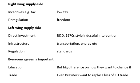 Everyone wants to improve potential output and there is a clear left vs right divide on how best to achieve it.