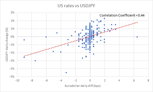 The results are important for the construction of a longer-term macro portfolio. Take 2yr US rates and USDJPY as an example: