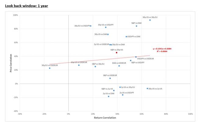 In this chart, I take a selection of major markets that a typical macro portfolio may contain: major currency pairs, interest rates and the S&P.