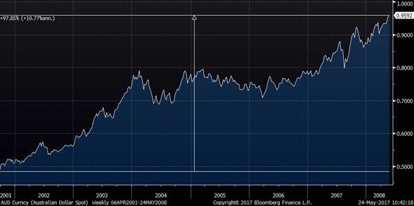To use an Australian dollar example, the value of the currency doubled between 2001 and 2008